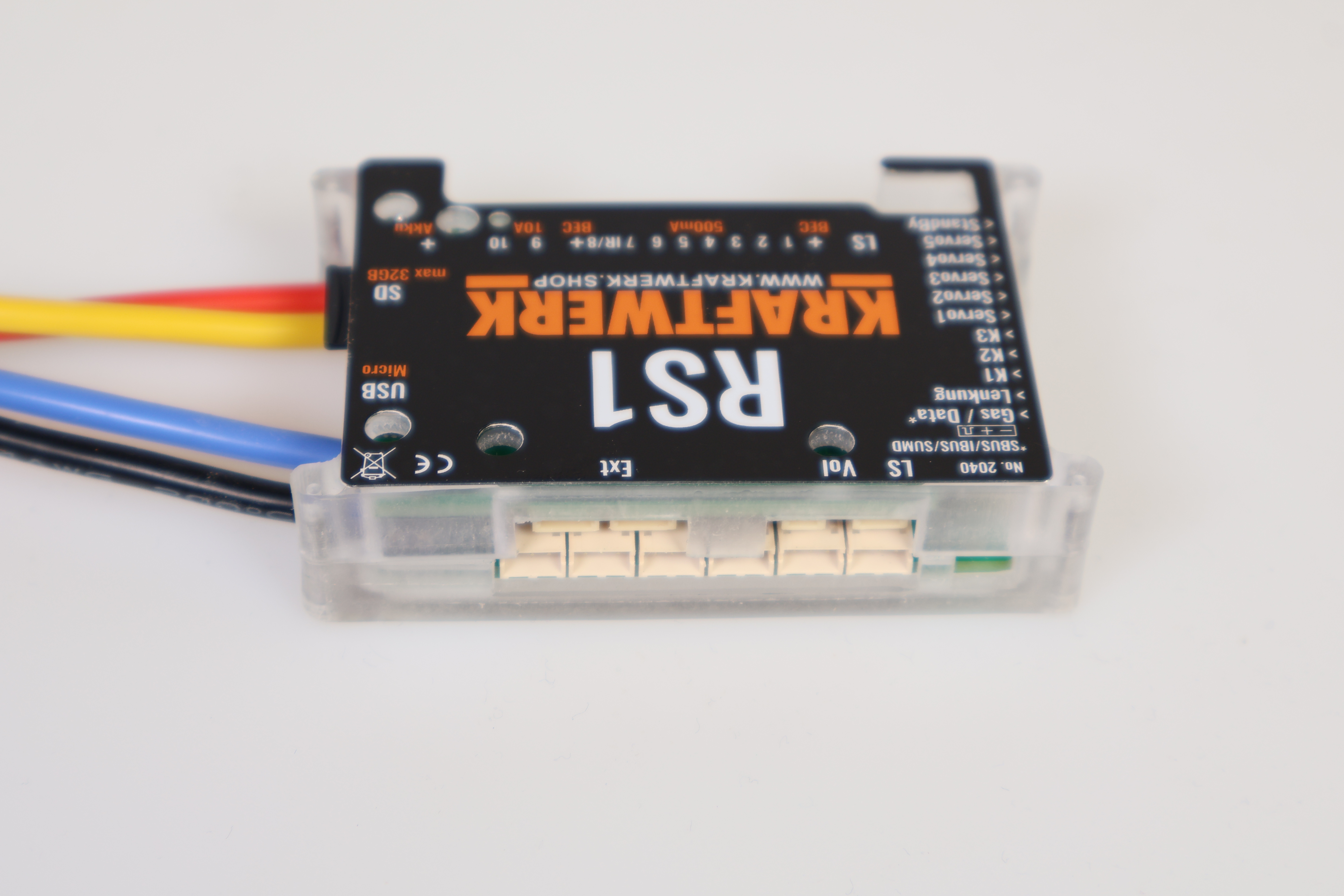 Die führende Technologie von KraftwerK im Bereich RC-Bussysteme zeigt sich im RS1 besonders deutlich. Über sechs EasyBus-Ausgänge lässt sich das Modul beliebig erweitern – etwa mit Beleuchtungsplatinen, Schaltererweiterungen oder Servosteuerungen.