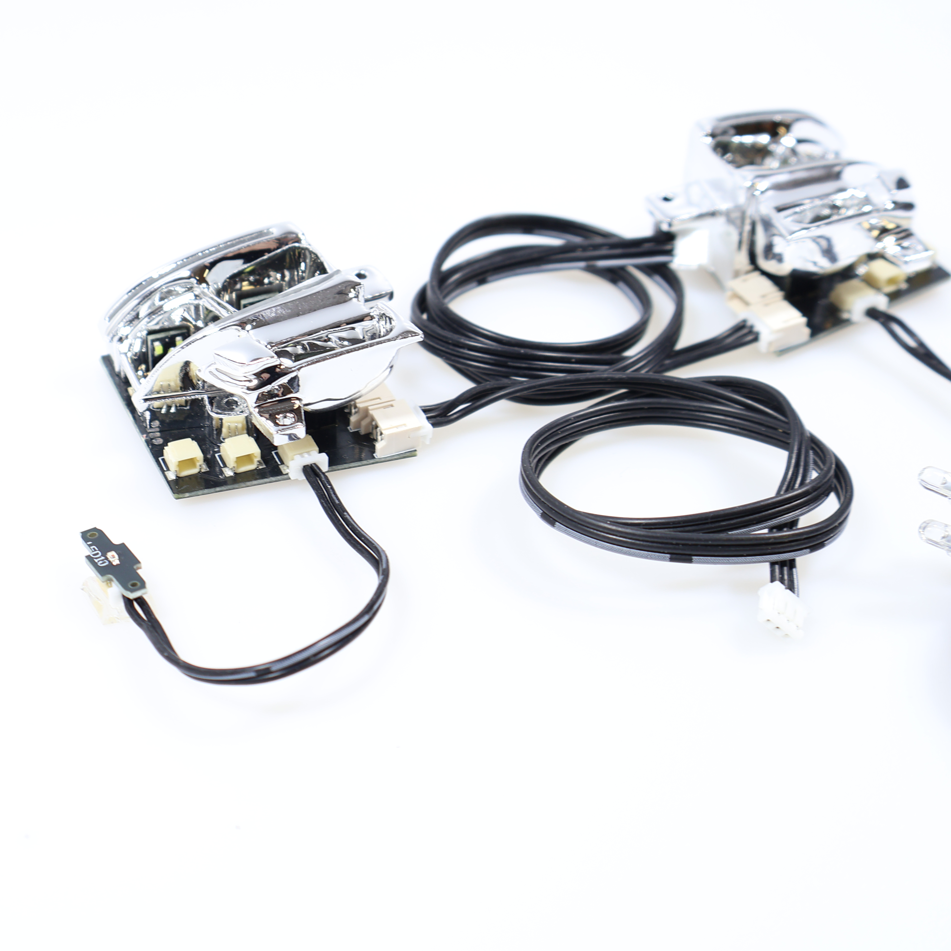 Das RS1 Set Scania 770S Basis umfasst die zentrale RS1 Steuereinheit, passende Frontscheinwerfer sowie Lichtplatinen für die Rückleuchten inklusive neuer Trennstege und Streuscheiben. Es bietet die technische Grundlage für den vollständigen Umbau der Beleuchtung des Scania 770S.