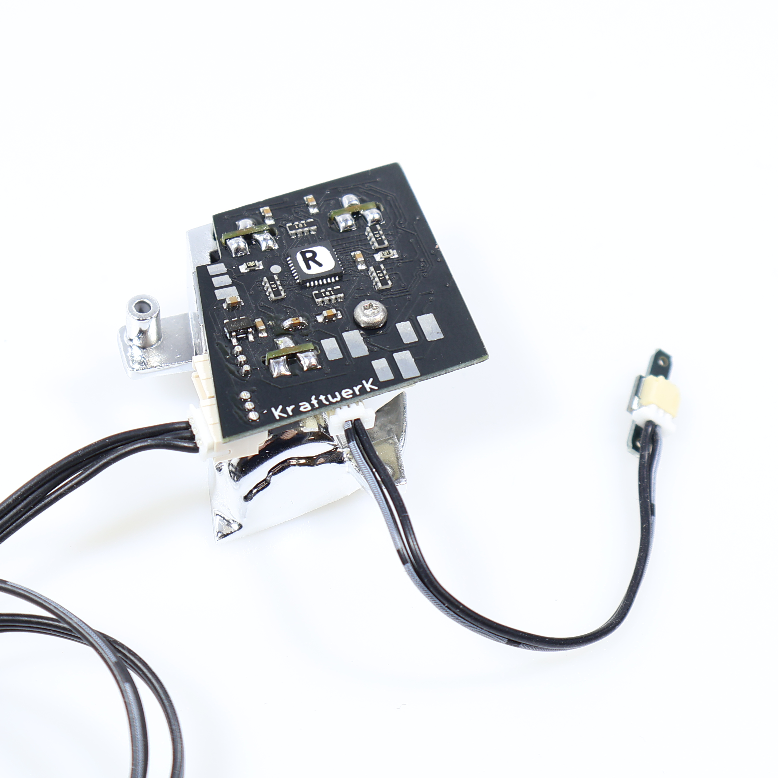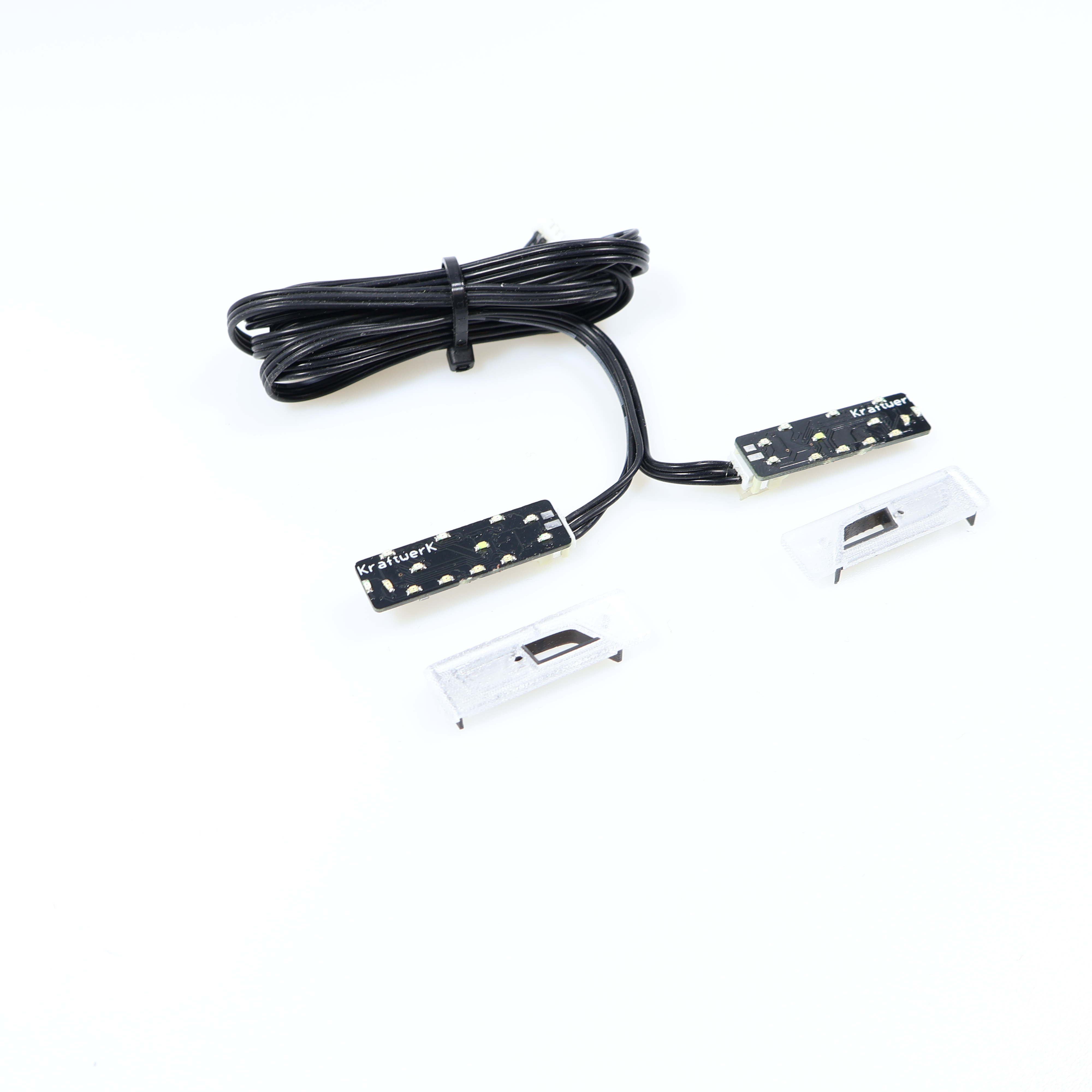 Die Frontscheinwerfer ersetzen die originalen Chromteile vollständig und sind ohne Umbau direkt einsatzbereit. Integrierte Seitenblinker werden über die Scheinwerfer angesteuert. Alle Komponenten sind über den KraftwerK EasyBus verbunden, was eine einfache und zuverlässige Integration ermöglicht.