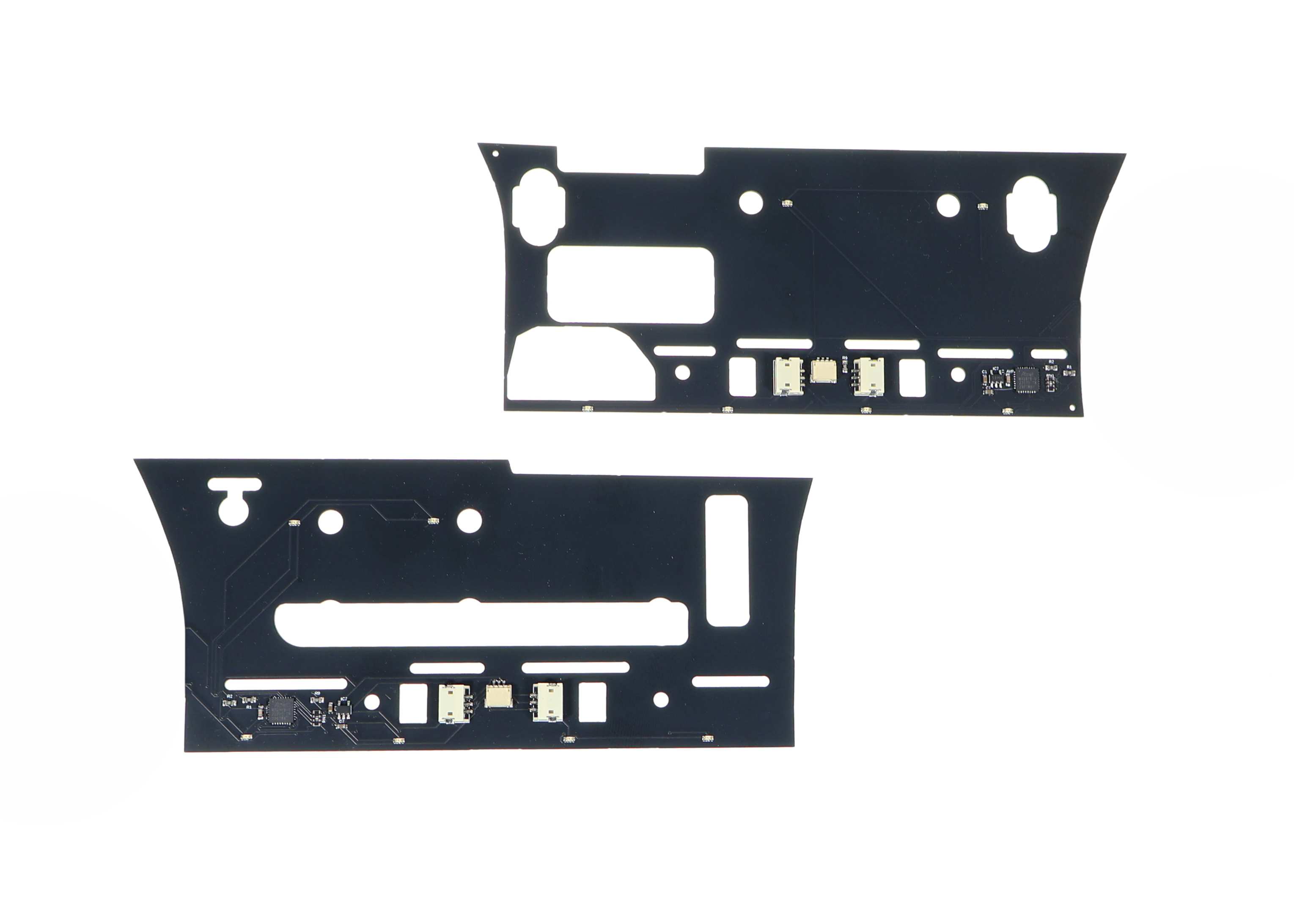 Die Platinen lassen sich ohne Anpassungen in die vorhandenen Seitenteile integrieren. Hochwertige LEDs sorgen für eine helle, saubere Ausleuchtung und verleihen dem Modell ein authentisches Erscheinungsbild – sowohl im Stand als auch während der Fahrt.